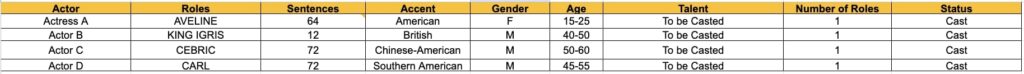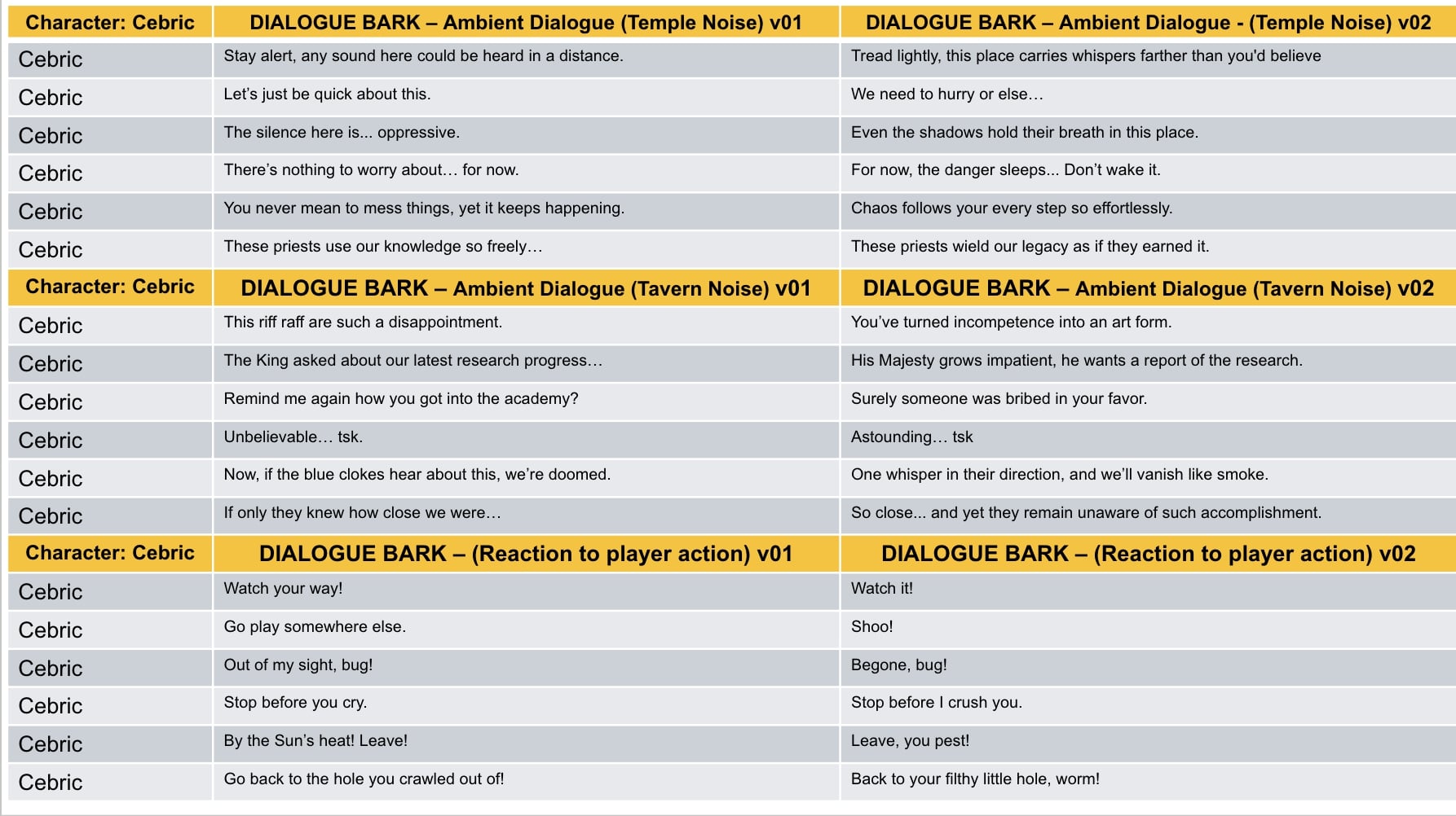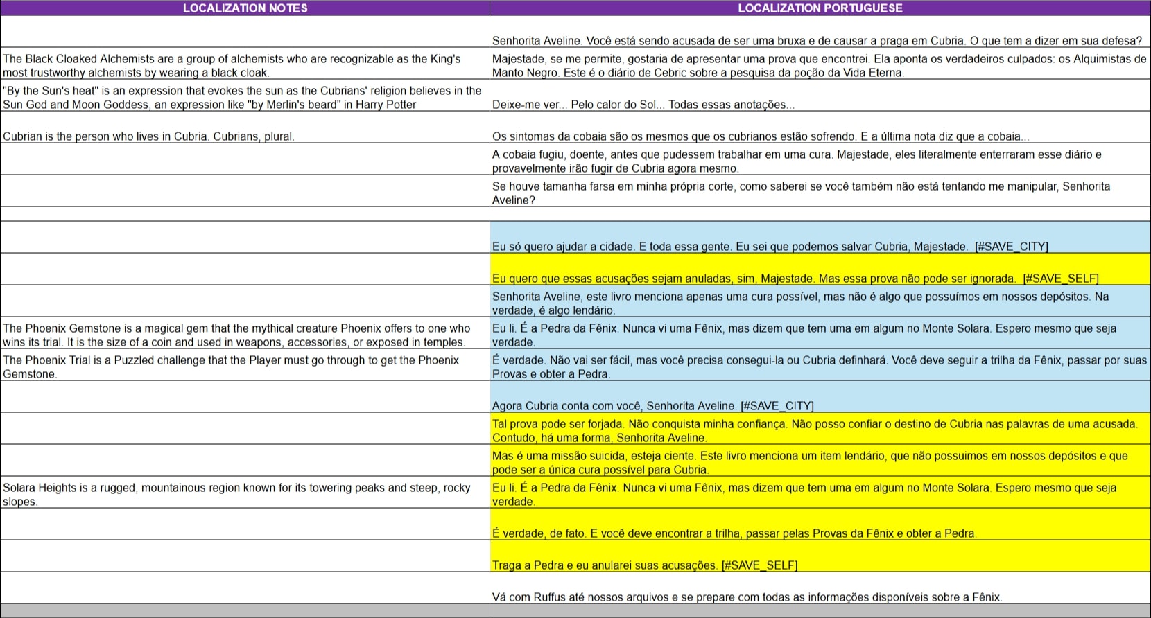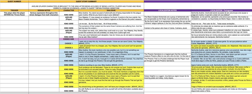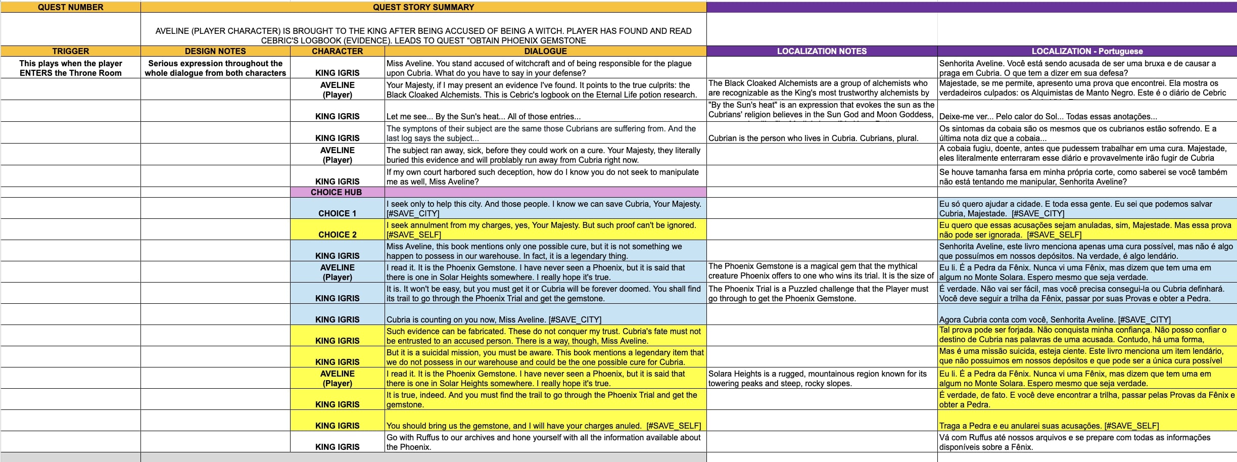 Aside from writing the quest dialogue, the localization notes and the Portuguese transcription, I did the actor casting and voice over docs.
