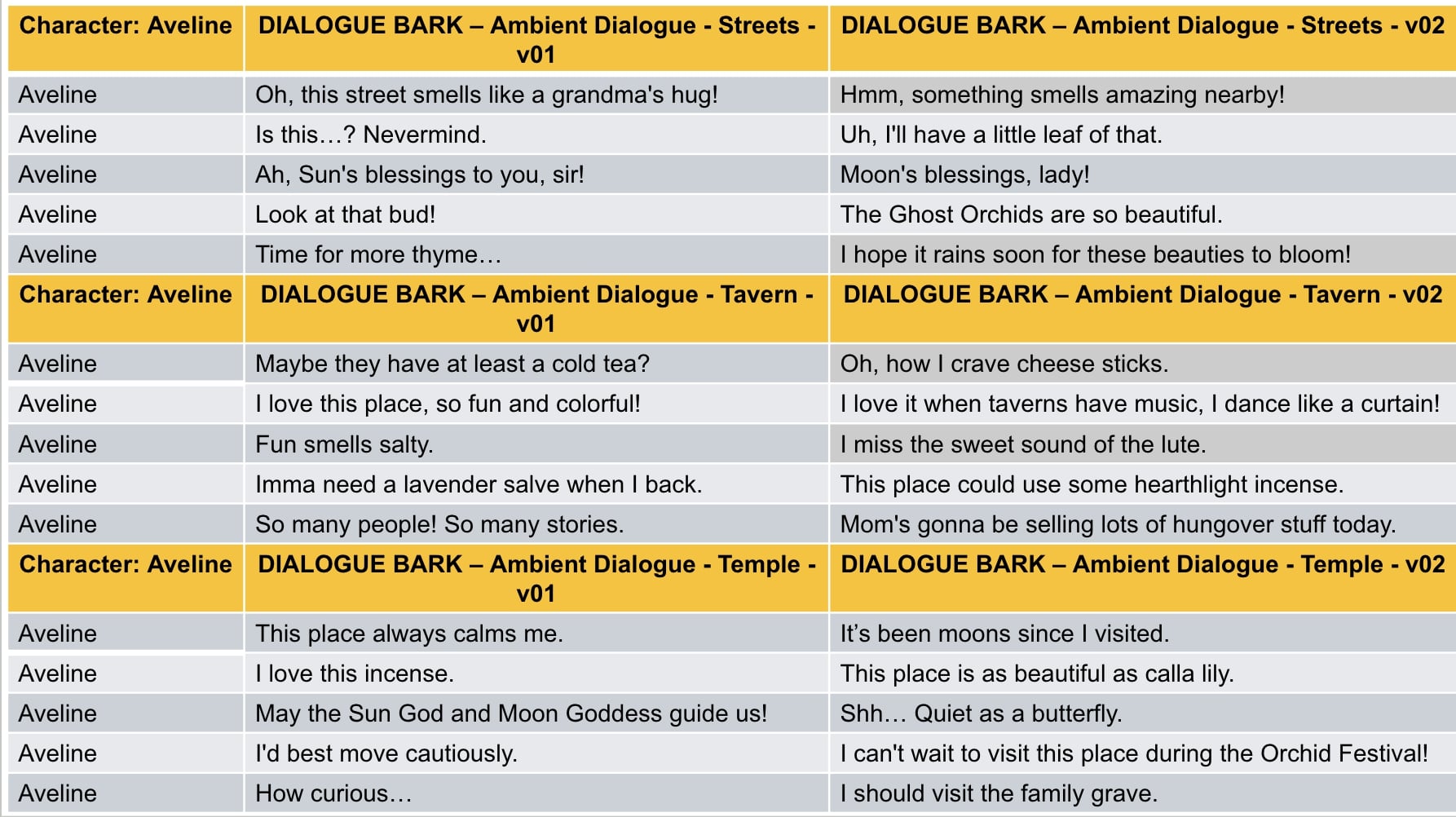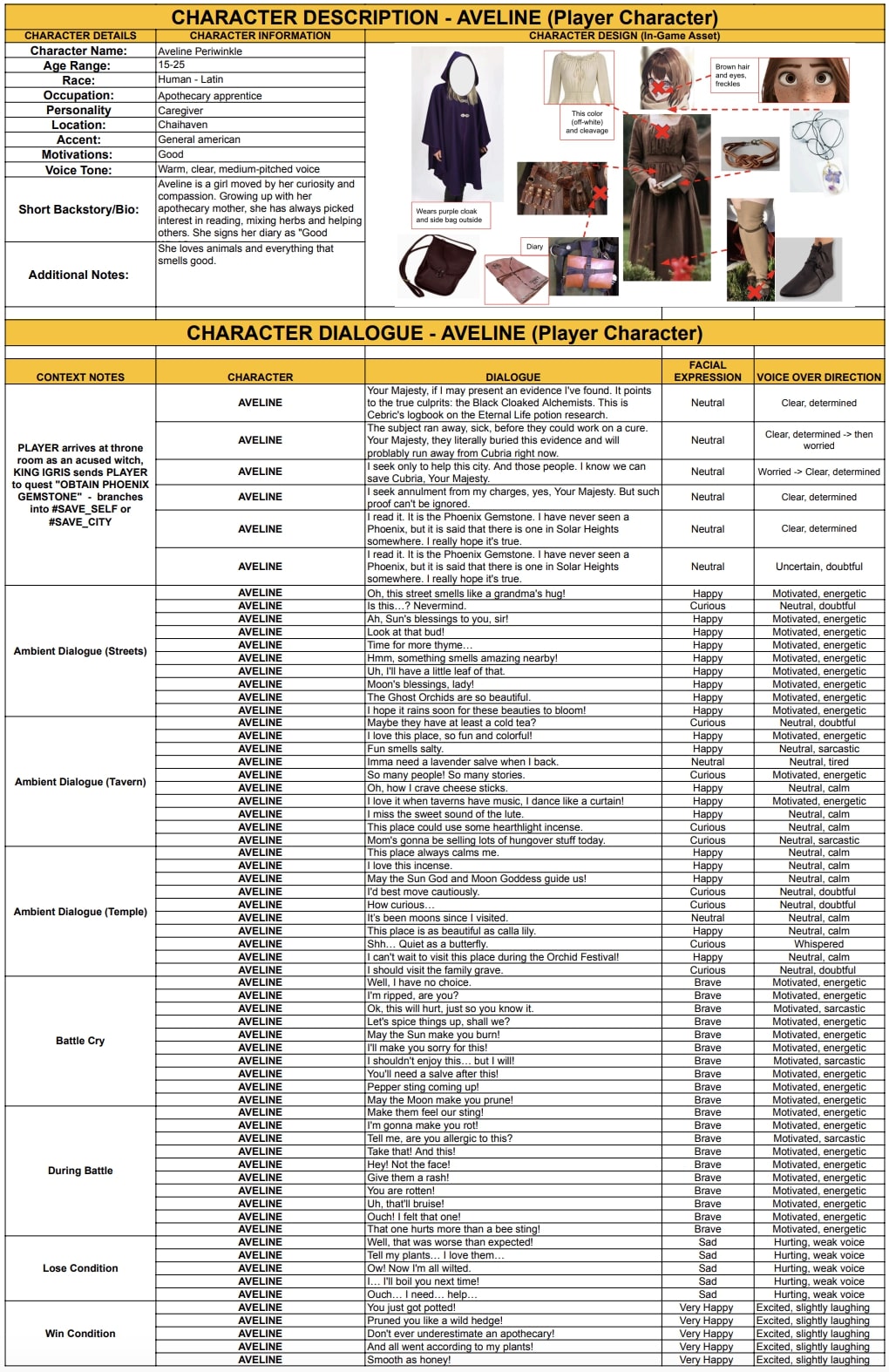- Finalized character personalities, bios, and barks based on the finished character designs.